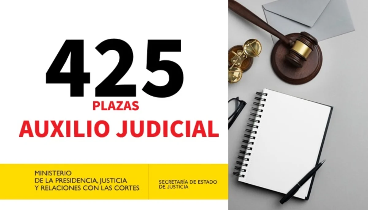 El Ministerio de la Presidencia, Justicia y Relaciones con las Cortes convoca un proceso selectivo para ingreso, por el sistema general de acceso libre, mediante de oposición, en el Cuerpo de Auxilio Judicial. Se convoca un total de 425 plazas, de las que se reservan 43 para ser cubiertas por el cupo de reserva personas con discapacidad con un grado igual o superior al 33 por ciento.